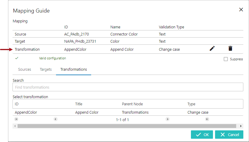 The populated transformation can be edited / removed by clicking the edit icon (