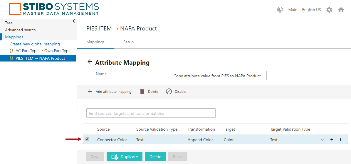 - If transformations are needed, users can either use an existing attribute transformation in the system or create a new one by clicking the 'Create new transformation' icon (