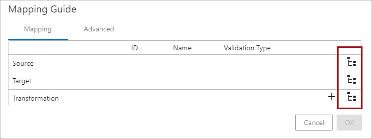) available within the Transformation field will open the Transformation Overview window where the user can create a new attribute transformation. For details about creating an attribute transformation standing on a Mapping Guide window, refer to Creating Attribute Transformations Through Mapping Guide Window topic.