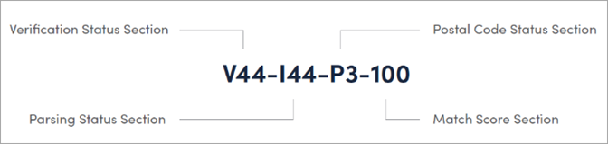 Loqate provides optional standardization to return geocode information in addition to the standardized address. When enabled, a fifth set of values will be applied to the AVC. The geoaccuracy code is comprised of two parts: the geocoding status and the geocoding level. With geocode enabled, the original example might display as V44-I44-P3-100-P4, where P4 is the geoaccuracy code.