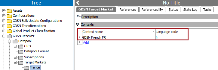 Add contexts and language codes to the Target Markets. Note that it is possible for multiple language codes to apply to a single context.