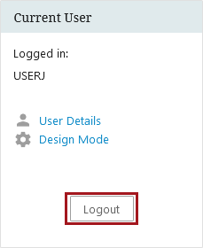 To log out of the Web UI you must click the 'Logout' button on the Current User widget on the homepage screen.