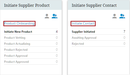 4. Workflow Widgets - These configured widgets will track products or entities that have been onboarded as well as Supplier contacts and the locations.