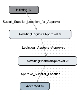 The idea is that a supplier user initiates a product, another (possibly internal) user enriches the product with additional information, a third user (internal marketing employee) updates marketing relevant information. The final state is 'Remove_Object_From_Workflow' meaning that the product has successfully been transitioned and maintained through the workflow using the Supplier Web UI.