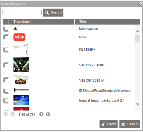 1. Select 'Insert.' A dialog appears showing you the available images in the database.