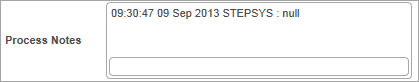 3. The text entered will now be displayed in the message area tagged with date, time and user. You can also click the Save and Submit button to save the Process Note.