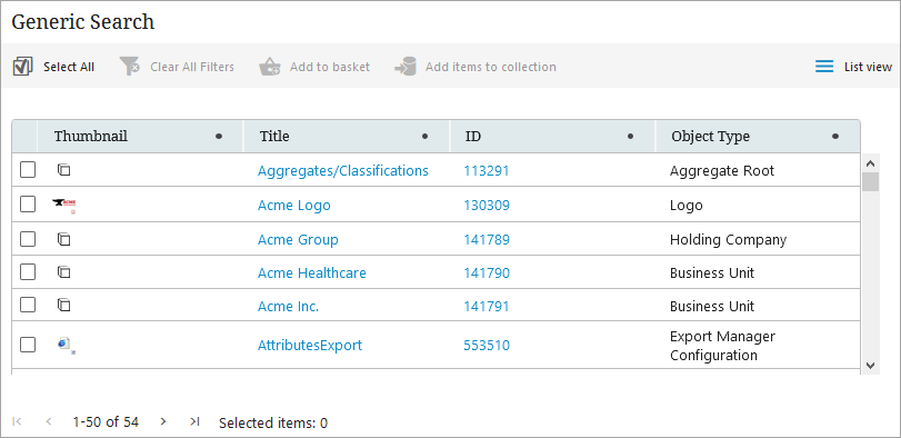 3. Search - Finds nodes with an ID or name matching the search phrase.