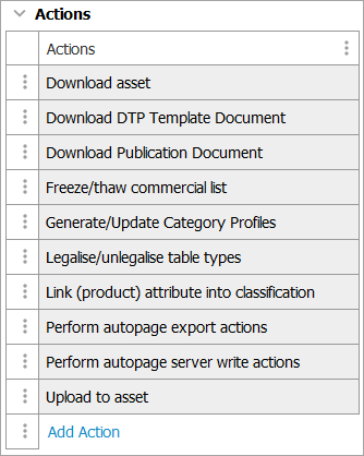 • There are a few exceptions to alignment between action sets and actions names or labels. If any of these User Actions are needed, use the intent of the action and knowledge of the business requirements to group User Actions that start with a different word than the six listed above. For example, 'Download asset' may be considered a 'View' User Action and 'Upload to asset' may be considered a 'Create' or 'Modify' User Action. Be consistent across Action Sets when deciding where to group them.