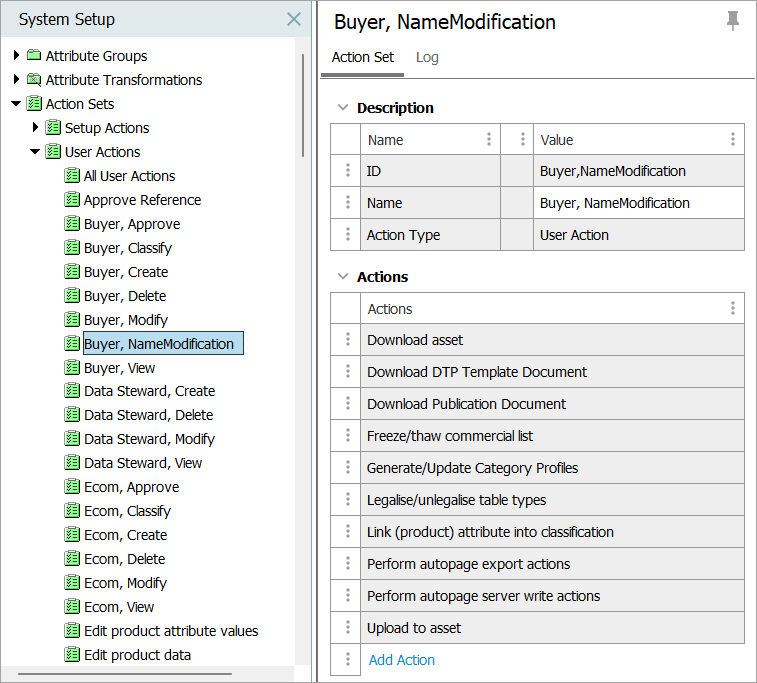 Note: For 'Name' on assets, products, entities, and classifications, it is recommended to create a stand-alone action set, as customers often do not allow users to make changes or modifications to names.