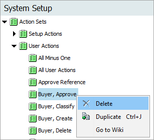 2. Select the relevant Action Set, right-click on it, and select Delete.
