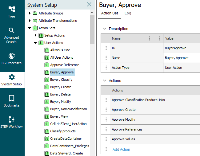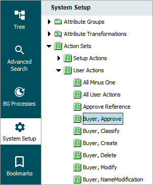 1. In System Setup, open the Action Set group and select the relevant main Action Sets folder.