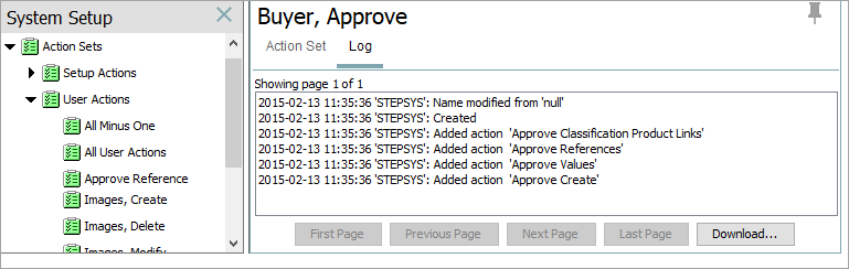 Action Set Log Tab