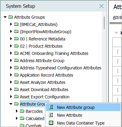 - In System Setup, expand Attribute Groups, and then select the relevant attribute main group folder.