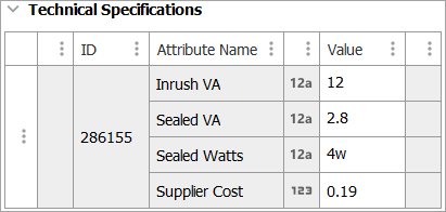 Supplier Cost ranges from 0.19 to 0.45 in data container types 244320 and 244321. |