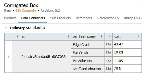 After data container setup, a data container instance can be created on entities or products in the Tree. The data container type Validity tab settings determines the object types that display the data container. For more information, refer to the Setting Up Data Container Types in STEP Workbench topic.