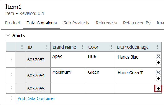 Alternatively, click the > button at the beginning of a row to access the Add Data Container option.