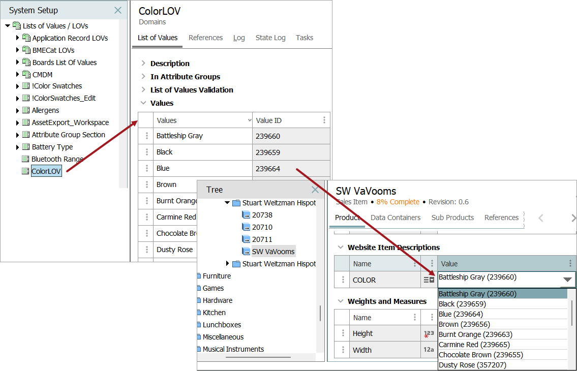 • A single LOV can be used by multiple attributes. For example, a single list of colors could hold all possible colors for your products.