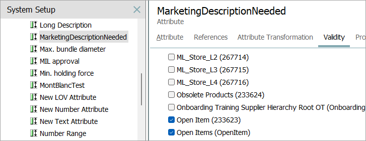 1. In System Setup, expand Attribute Groups, expand the relevant group, and select the relevant attribute. The Attribute editor displays.