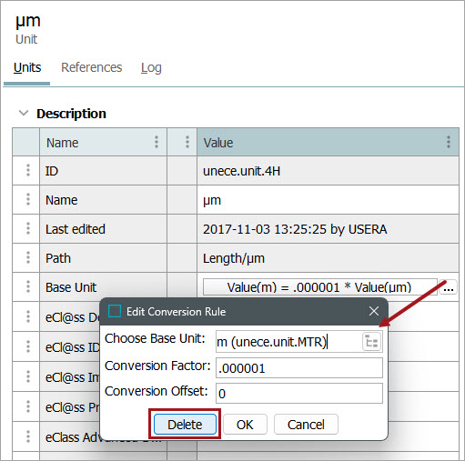 1. Click the OK button on the Edit Conversion Rule dialog to create the conversion rule between the two units displayed in the Base Unit field.