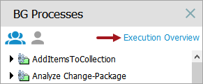Admin users with the 'View Background Processes of Other Users' setup action (explained in the Action Sets topic) can monitor the execution of background processes via the 'Execution Overview' link available on the BG Processes tab in the workbench.