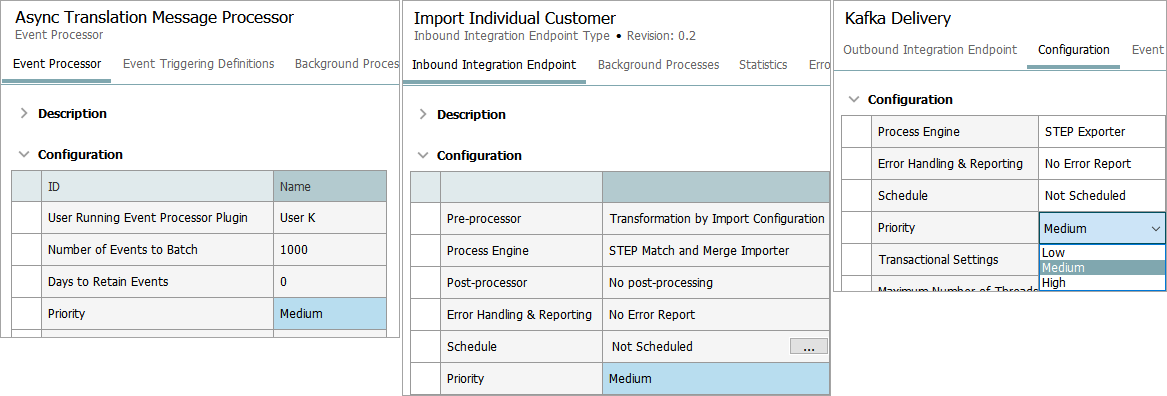 Important: It is recommended to initially leave all EP and IEP priority settings at their default 'Medium' value. This means that BGPs created and/or managed by these configuration types have the same priority as user-initiated BGPs (and BGPs created or managed by other EPs or IEPs). A change in priority to 'Low' or 'High' is only recommended when it is verified that a specific integration or background process should always have lower or higher priority than other BGPs being executed on the system.