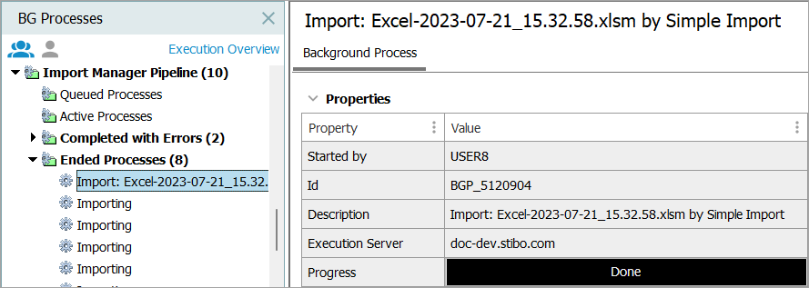 For all BGP execution mechanisms, states are indicated by the folders below each node on the BG Processes tab. The status of a BGP is displayed on the Background Process tab.