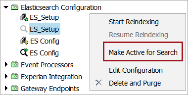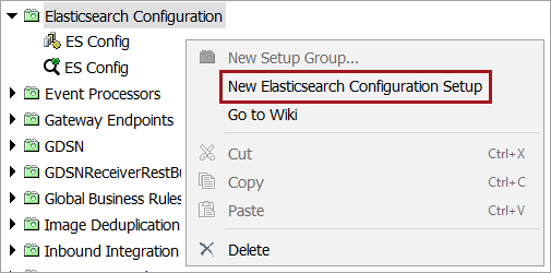 • To create: Right-click the Elasticsearch Configuration node and select the New Elasticsearch Configuration Setup option.