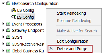 1. In System Setup, select the Elasticsearch configuration, right-click and click the Delete and Purge option.