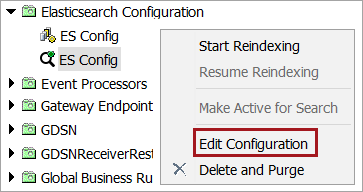 • To update: Click the Elasticsearch Configuration you would like to update. Right-click and select the Edit Configuration option.