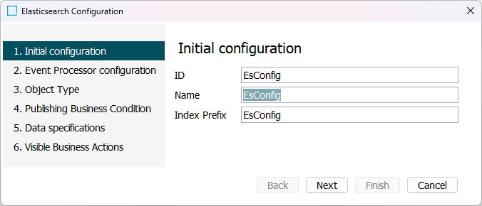 2. On the Elasticsearch Configuration wizard 'Initial configuration' step: