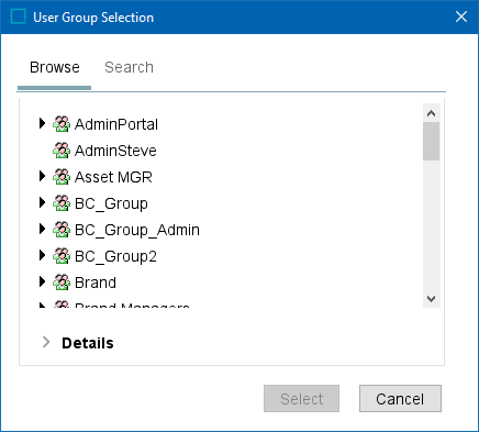 • Select the desired user group(s) and click the Select button.