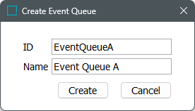 1. Add an ID and a name and click the Create button to save the event queue.