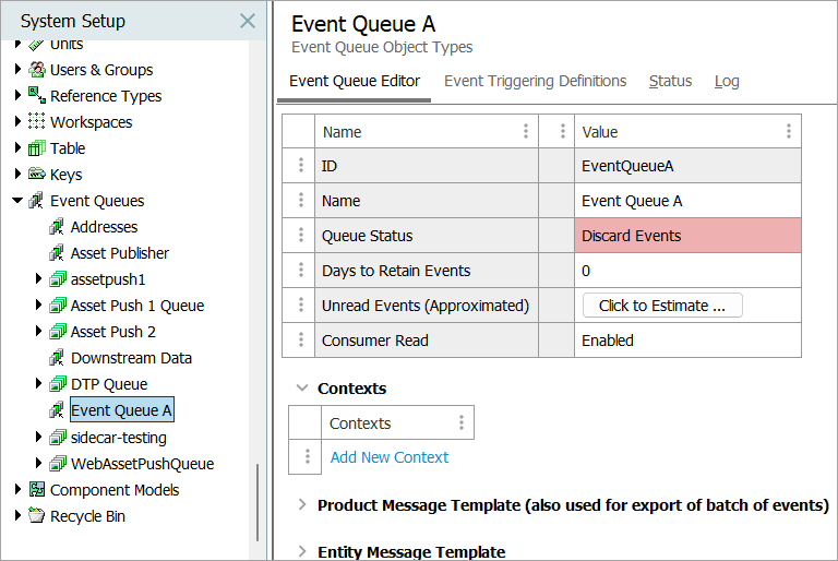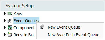 1. In System Setup, right-click the Event Queues node and select the New Event Queue option.