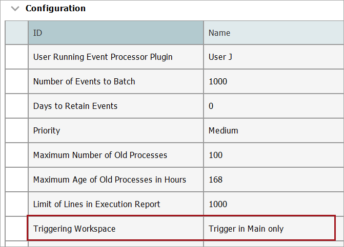 Note: To activate a change to the Triggering Workspace parameter, you must invoke the event processor with at least one event on the queue.