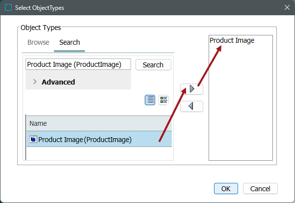 - Click the OK button to add the selection to the Triggering Object Types table.
