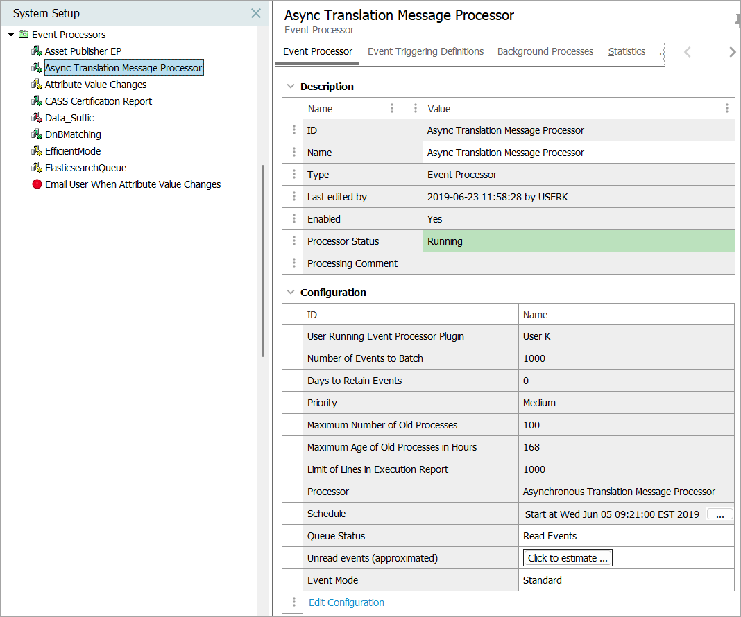 To access an event processor editor go to the workbench System Setup, click the Event Processors node, and select your event processor.