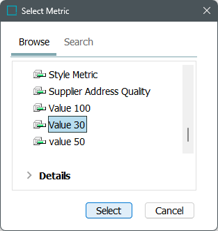Note: Only one metric can be selected at a time. After a metric is selected, click the plus button again to add another metric.