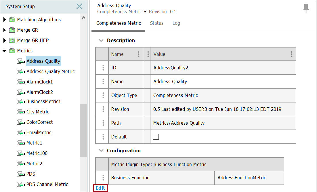 - Select the metric that you just created, and then, on the Metric tab, click Edit.