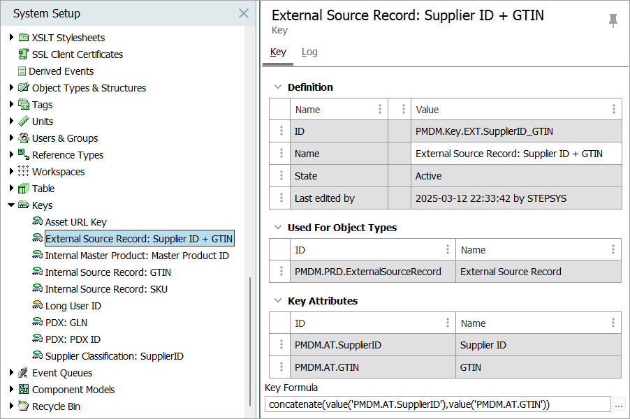 Keys are especially useful when STEPXML is delivered to websites or ERP systems that do not have the STEP ID of the exported products and need a specific, unique ID. For more information on exporting STEPXML, refer to the STEPXML Format topic of the Data Exchange documentation.