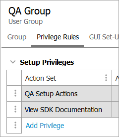 - Select the action set that grants access to the SDK and API documentation, click Select, and then in the Add Privilege Rule dialog click Save.