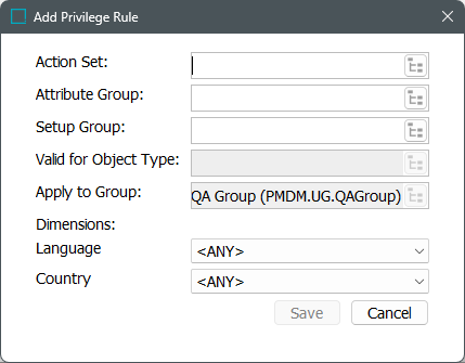- In the Add Privilege Rule dialog, next to the Action Set field, click the ellipsis button (
