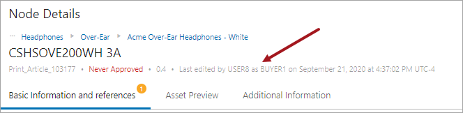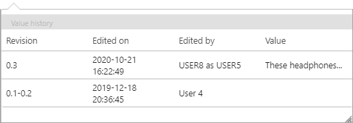 Important: STEP Workbench audit history shows user IDs, so only the STIBO.I user is displayed when looking at revision history in the workbench. The STIBO.I prefix indicates that the change was made under impersonation, and prompt you or other users to view the Admin Portal User Activity Report to uncover exactly who made the change.