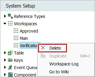 In System Setup, open Workspaces, and then click the workspace to be deleted.