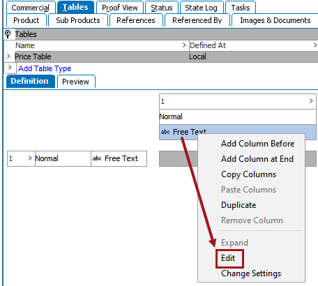 - With your table open on the Definition tab, right-click inside the cell(s) that you want to edit, then choose Edit. Cells may be multi-selected by holding Ctrl or Shift while making selections.