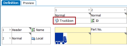 - The Content Definition of the row or column is now set to Asset. The STEP Name of the asset (e.g., TruckIcon) appears in the Content Definition cell on the Definition tab.