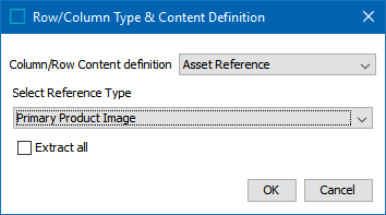 - In the Row/Column Type & Content Definition dialog, select Asset Reference from the Column/Row Content definition list.