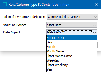 - In the 'Column/Row Content definition' list, select Commercial Data Aspect.
