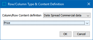 - From the 'Column/Row Content definition' list, select Date Spread Commercial data.