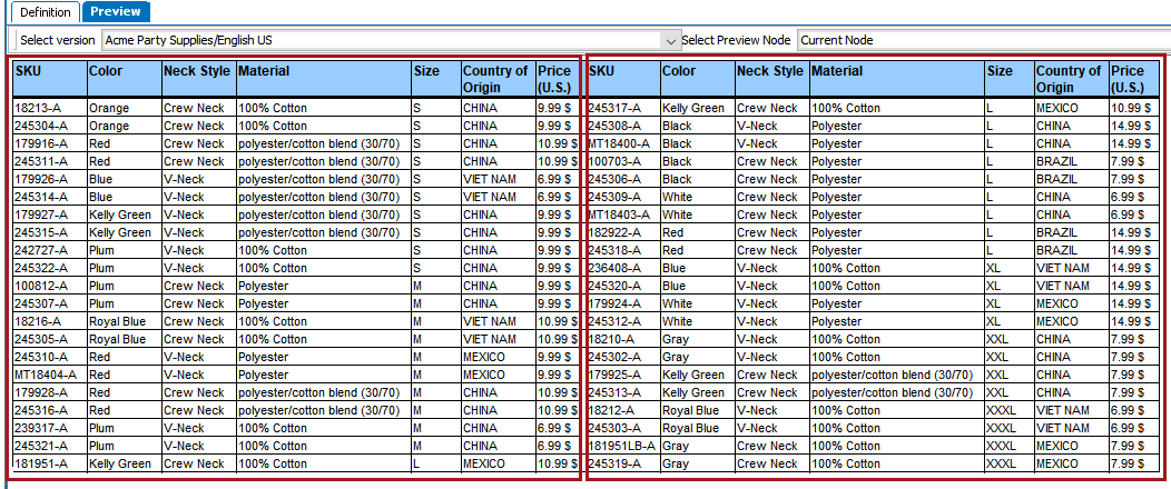 The Fold Table transformation enables you to split a table into two or more equal table columns. The transformation breaks the table so that the content flows from one column to the next. This is useful if you have a very tall table and would like to convert it to a shorter, more horizontally defined table.