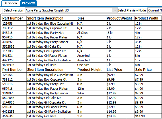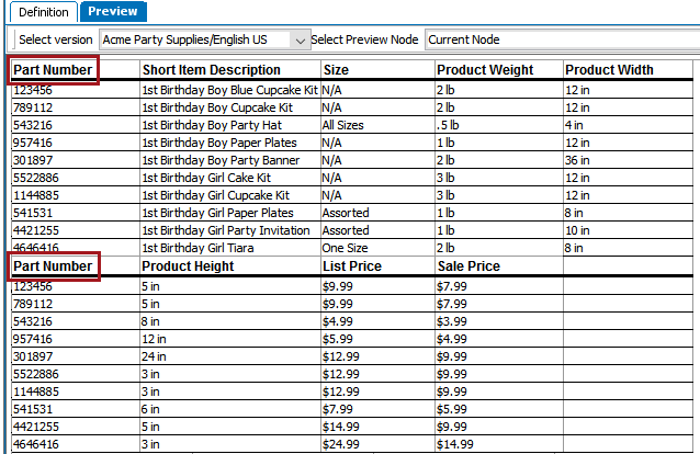 Though there are many combinations of configurations that can be applied within the transformation, the following two screenshots show a sample 'before' and 'after' of a table (as previewed within the workbench) after applying the Horizontal Wrap Table transformation.